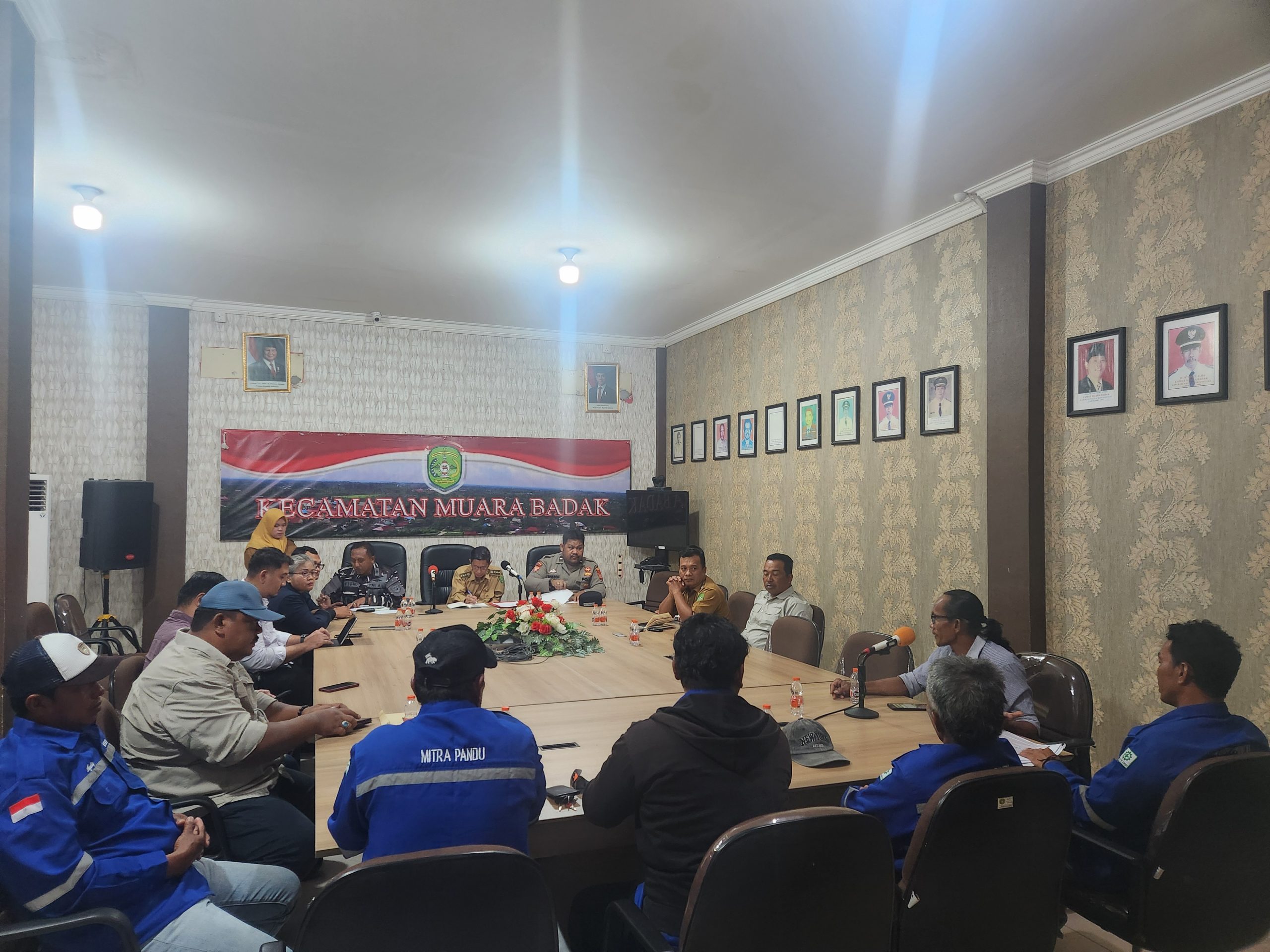 Muara Badak (27/4/2026) — Pertemuan rapat mediasi antara KSOP Kelas I Samarinda dengan nelayan yang tergabung dalam Kelompok Mitra Pandu Alam Desa Muara Badak Ulu saat ini tengah berlangsung di Kantor Kecamatan Muara Badak.