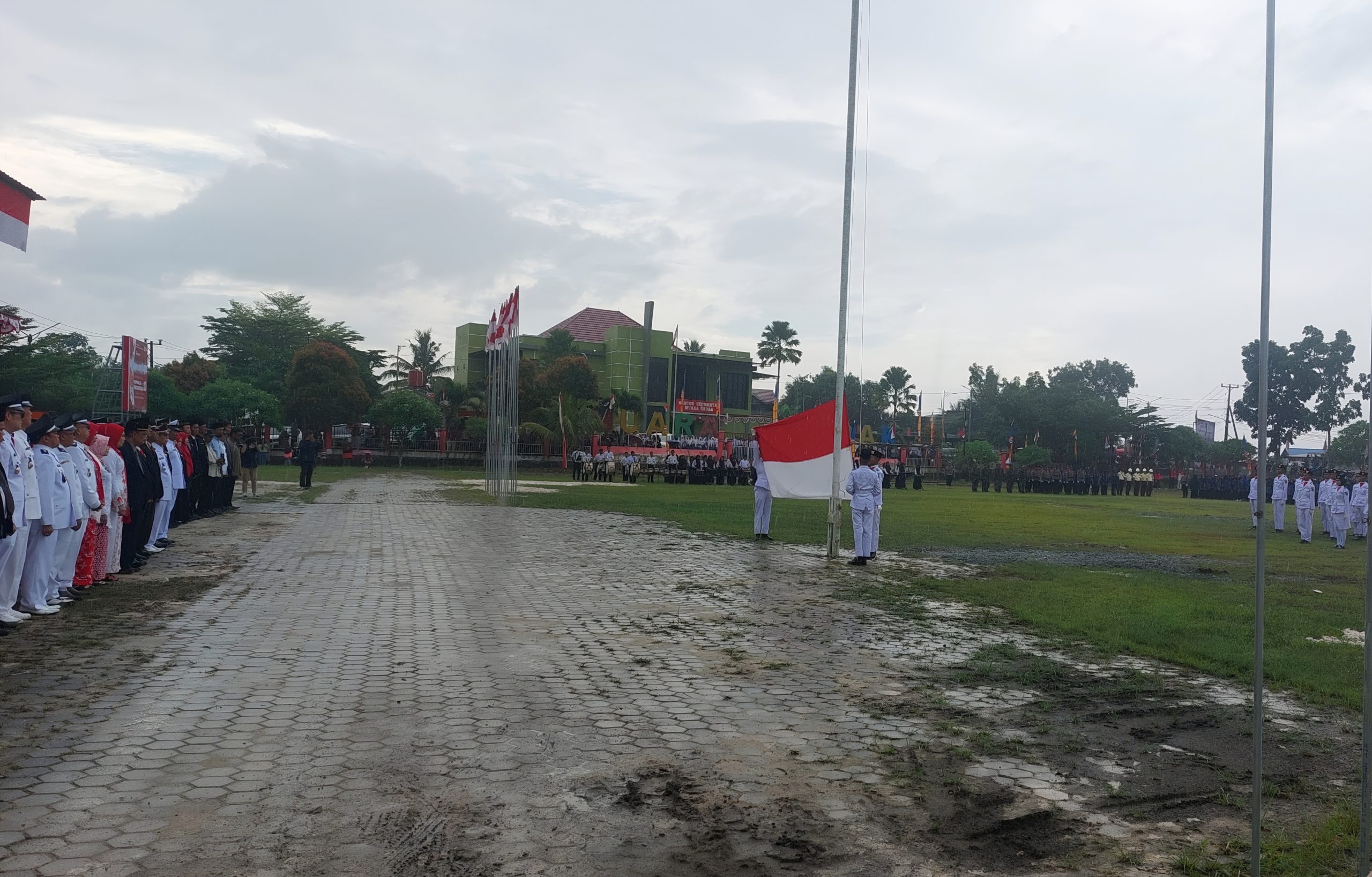 Muara Badak — Upacara peringatan Hari Ulang Tahun (HUT) Kemerdekaan Republik Indonesia ke-80 digelar di Lapangan Kecamatan Muara Badak, Kabupaten Kutai Kartanegara, pada Minggu (17/8/2025). Dengan tema nasional “Bersatu Berdaulat, Rakyat Sejahtera, Indonesia Maju”, prosesi berlangsung khidmat meski diguyur hujan saat pengibaran bendera Merah Putih.